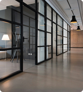 - Двери и перегородки: Используются для создания внутренних и наружных дверей с эстетичной отделкой. Монтаж алюминиевых конструкций выполняется с учетом требований безопасности и эстетики.